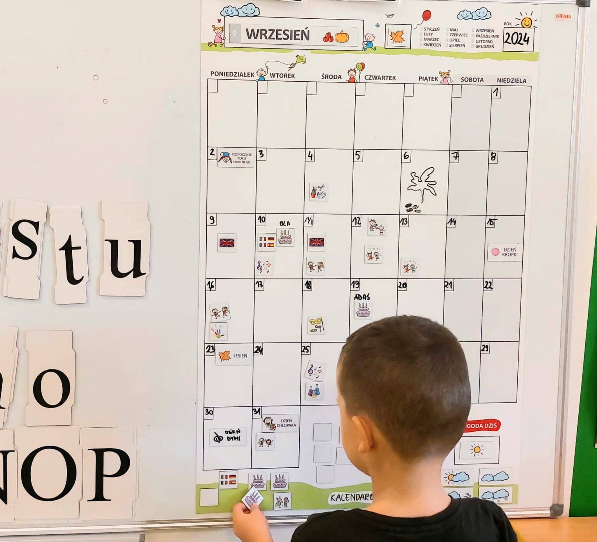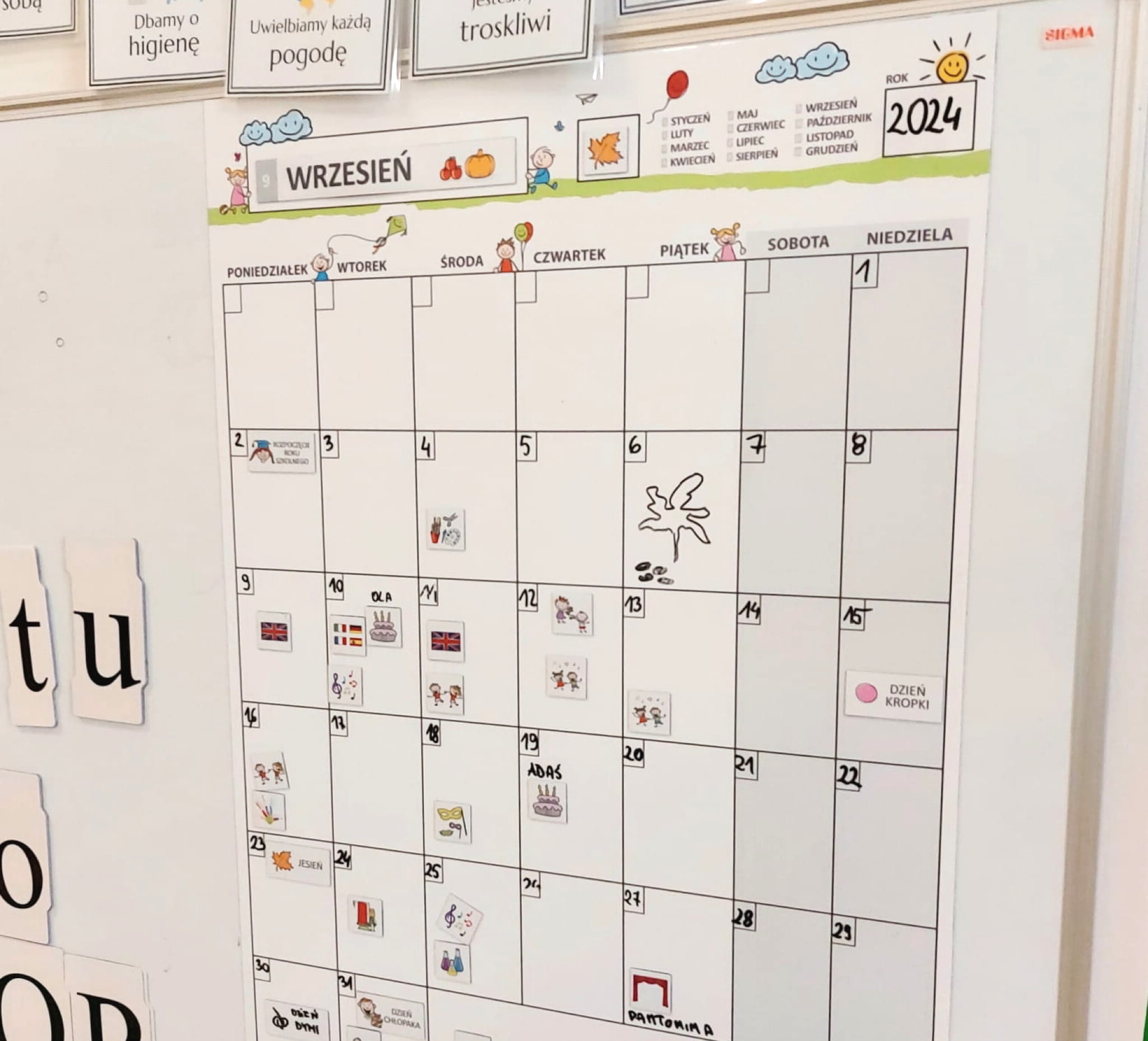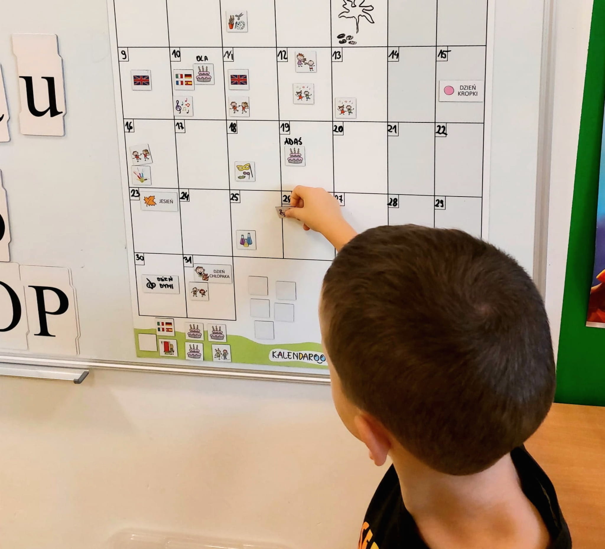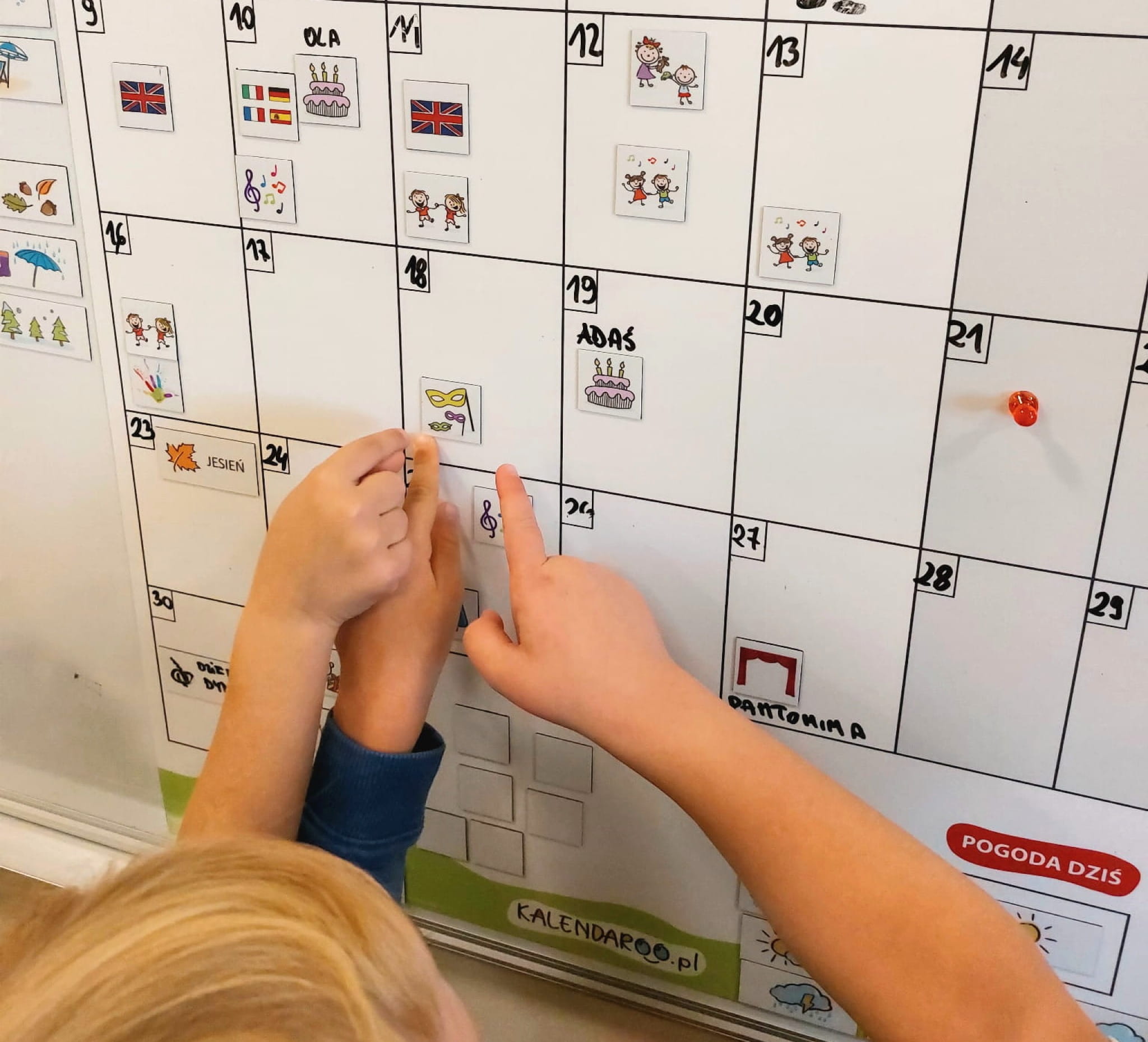 - angażowanie dzieci w uzupełnianie kalendarza dzięki magnesom