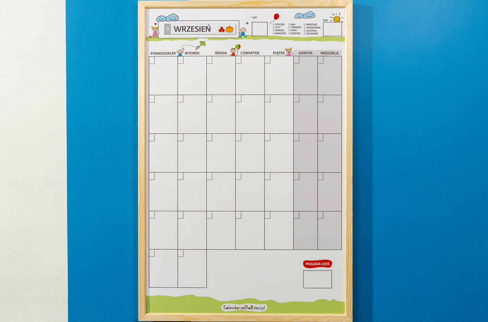 Kalendarz do przedszkola w drewnianej ramie