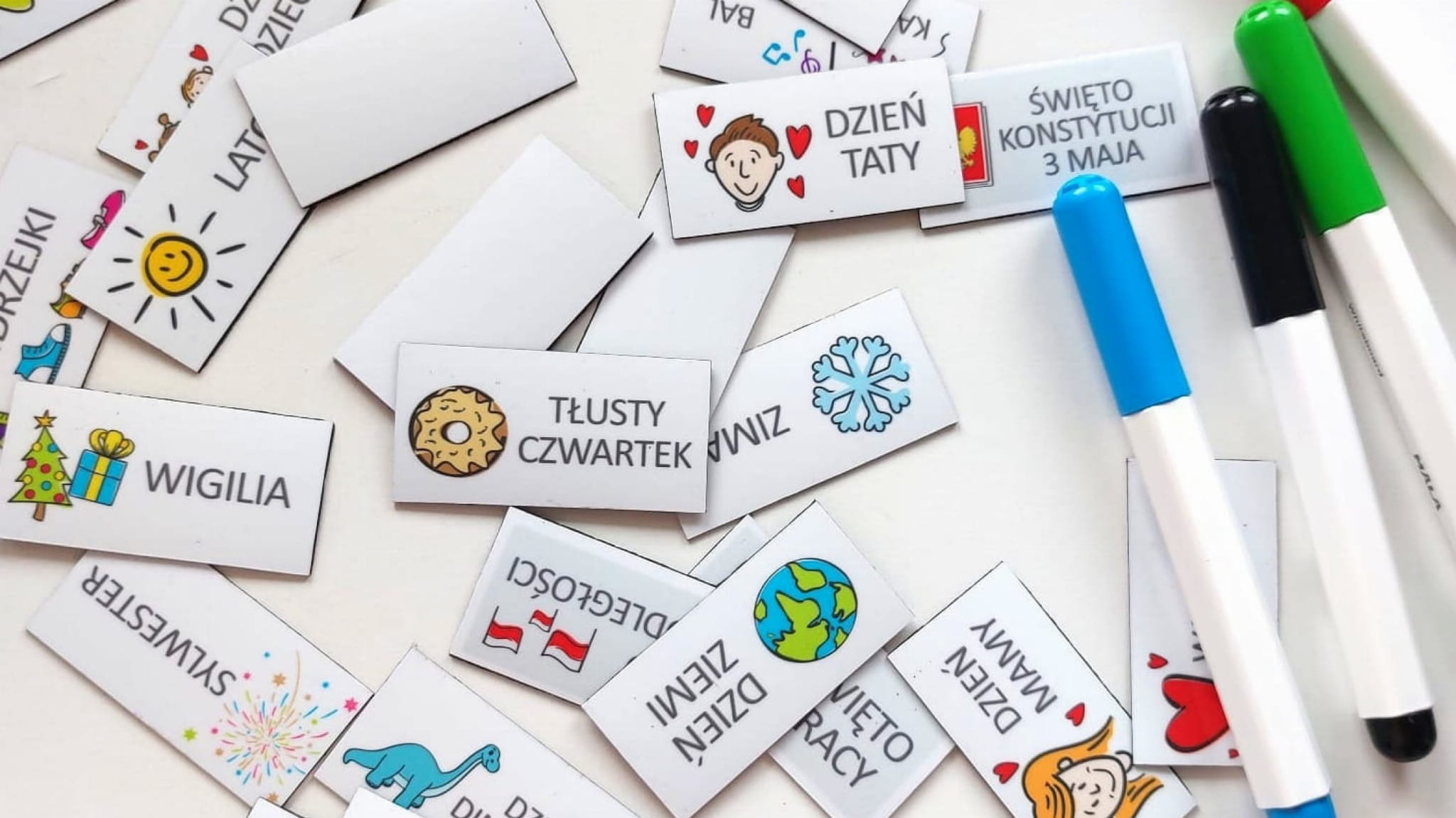 - aktywności - 23 magnesy o wymiarze 3x3 cm