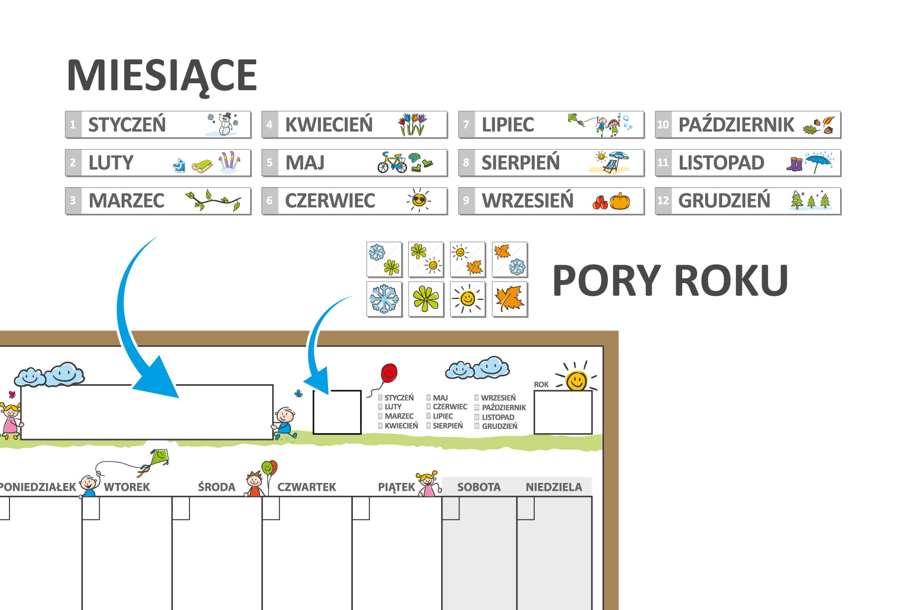 - nauka kalendarza w codzienności