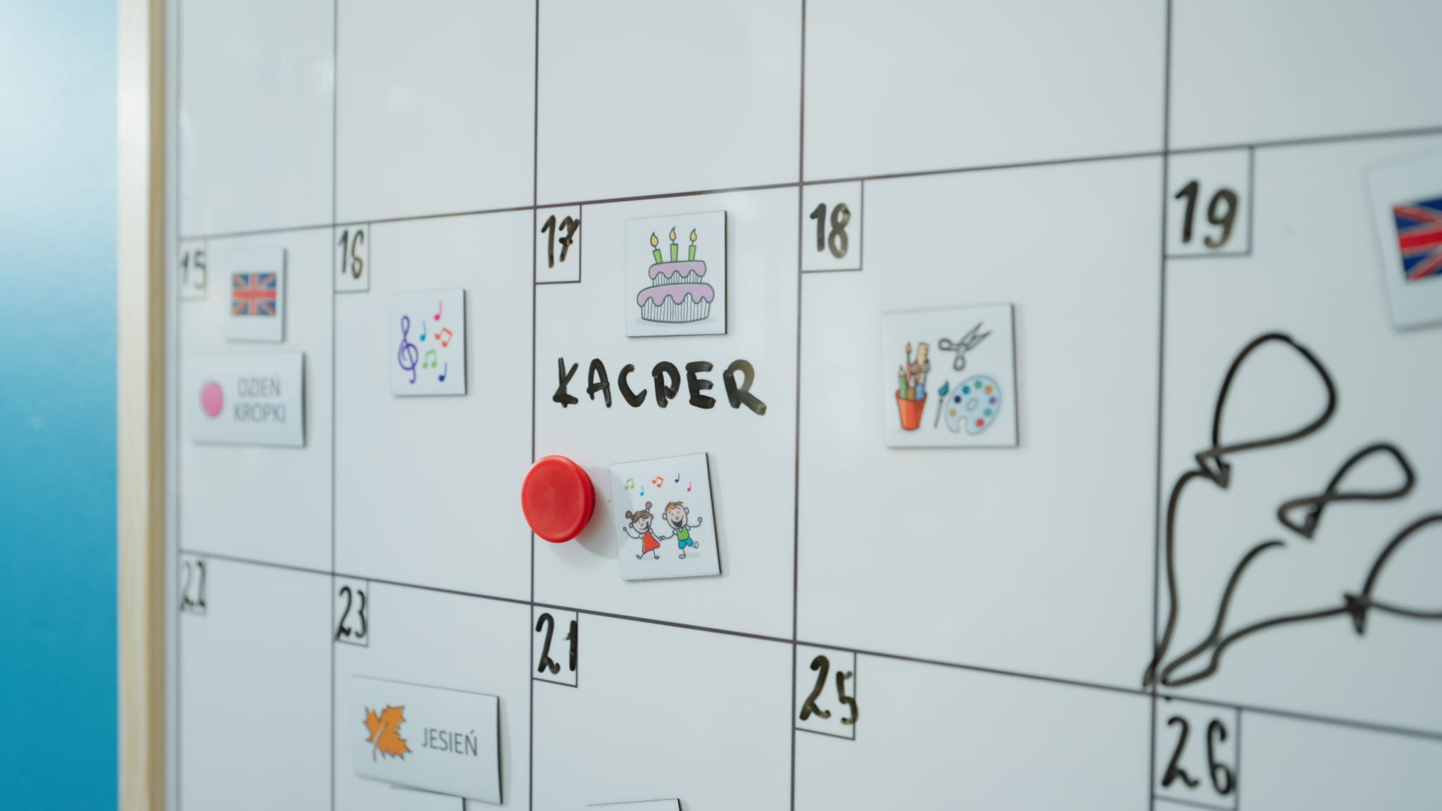 - angażowanie dzieci w uzupełnianie kalendarza dzięki magnesom